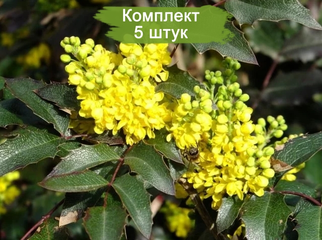 Каждый набор включает 5 здоровых и крепких саженцев, готовых к посадке. Магония Смарагд неприхотлива в уходе, устойчива к болезням и вредителям, а также хорошо переносит тень, что делает её идеальным выбором для различных условий выращивания. Весной растение порадует вас яркими желтыми цветами, которые привлекут в ваш сад пчел и других полезных насекомых.