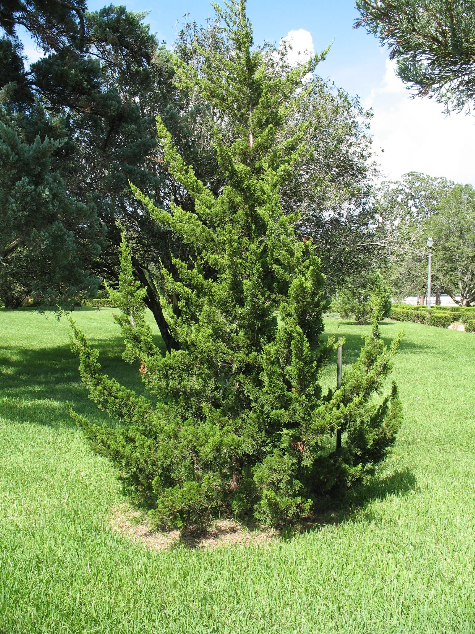 Можжевельник Виргинский известен своей устойчивостью к засухе и способностью выдерживать различные климатические условия. С его помощью легко создать плотные зелёные изгороди, которые не только украсят ваш участок, но и обеспечат приватность. Растение имеет плотную, колонновидную или конусообразную форму, покрытое мягкими иголками тёмно-зелёного цвета.